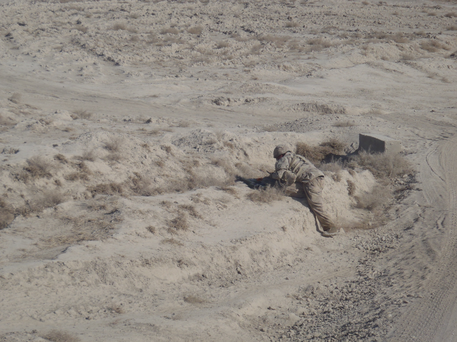 After dropping some troops off in the near-by FOB (Forward Operating Base) we continued our mission further on down to a more unknown area to us. In approximately the same spot we hit an IED two days before; we hit another one with our lead vehicle. The driver, a very motivated soldier, was a bit rattled but able to carry on. We set out our cordon and began to wait for the QRF (Quick Reaction Force) accompanied by EOD (Explosive Ordnance Disposal). In the mid summer heat in a desert, a six hour wait for some help while you’re scanning your arcs for potential enemy is not the ideal way to spend your day.